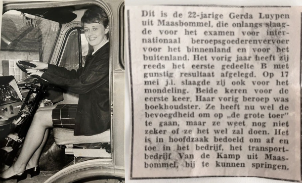 In een tijd waarin vrouwelijke ondernemers nog zeldzaam waren, behaalde Gerda – partner van Gijs – haar diploma’s voor nationaal én internationaal beroepsvervoer.